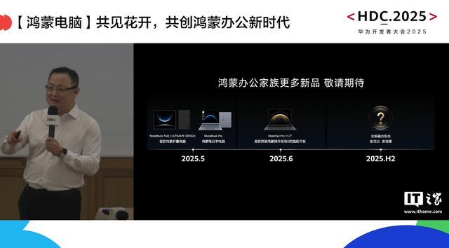 IT之家 6 月 21 日消息,华为开发者大会 2025 今日继续进行,华为终端 BG 平板与 PC 产品线总裁朱懂东带来了鸿蒙电脑更多新消息。