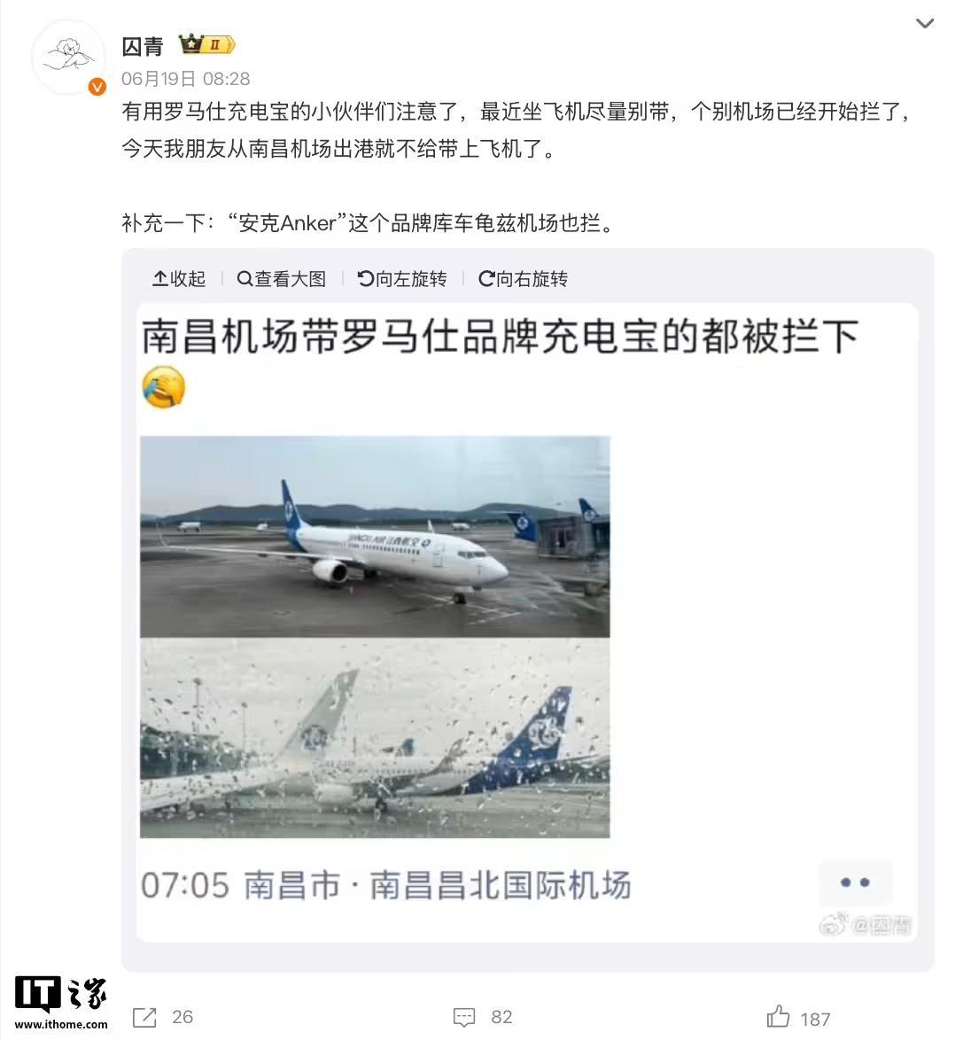 文章来源于互联网:凤凰网-多家机场严查罗马仕、安克品牌移动电源充电宝,涉及深圳宝安、长沙黄花、南昌昌北等