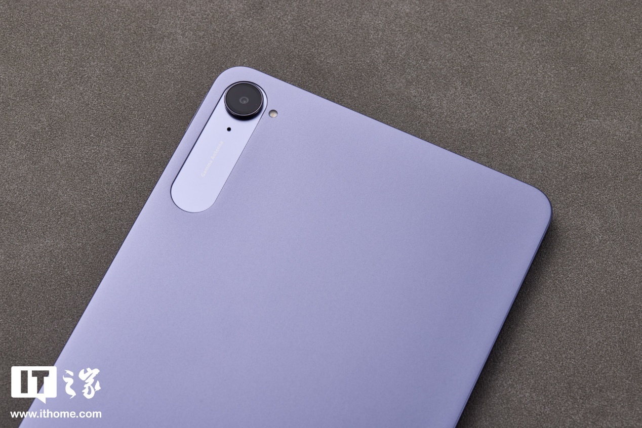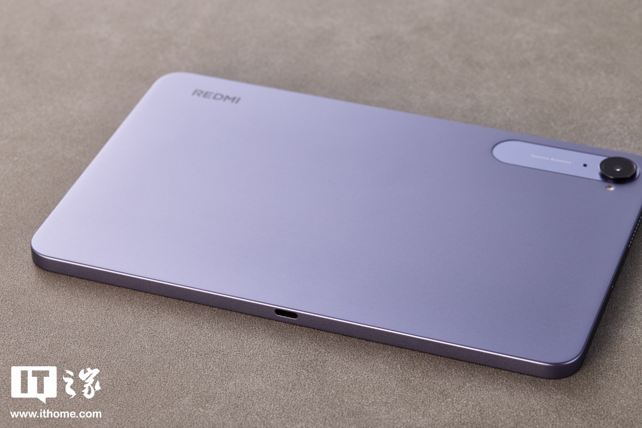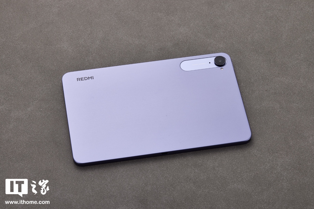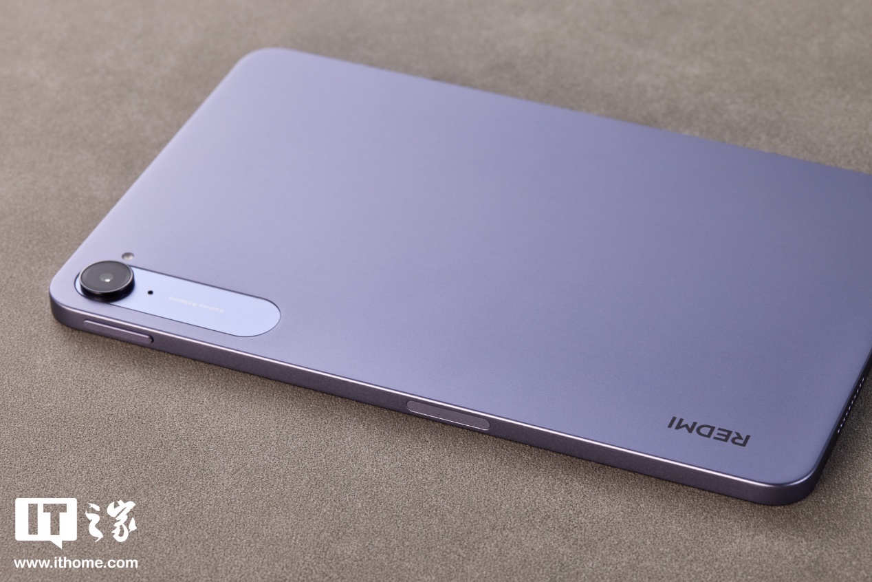 烟霞紫配色则是提升 REDMI K Pad 精致感的另一大要素,低饱和度的紫色更显典雅,也能彰显使用者的性格和品味。实际光线下的视觉色彩会更淡,另一种云杉绿配色也是这种低饱和色设计,都是较为耐看的类型。后壳左上角有全大写的 REDMI Logo,右上角则是后置镜头模组。