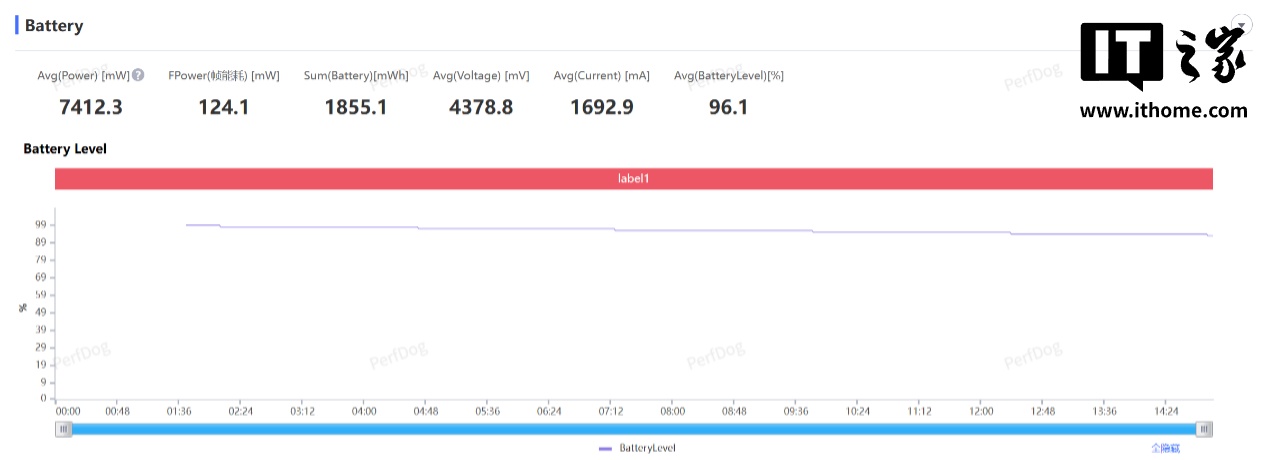 当然,更稳的游戏帧率和 1% Low 帧也是有代价的,《绝区零》的游戏平均功耗接近 8W,因此最高温度也提升到 42.1℃。不过 15 分钟的游戏耗电依旧是 7%,这与《崩坏:星穹铁道》是持平的。