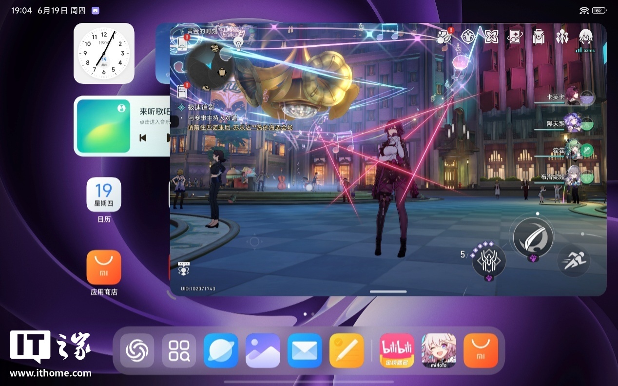下面我们就通过游戏实测,来看看 REDMI K Pad 的游戏体验究竟怎么样。首先是《崩坏:星穹铁道》,由于体验时间非常紧张,测试均采用 15 分钟固定时长,所有游戏均在游戏侧边栏中开启狂暴模式。