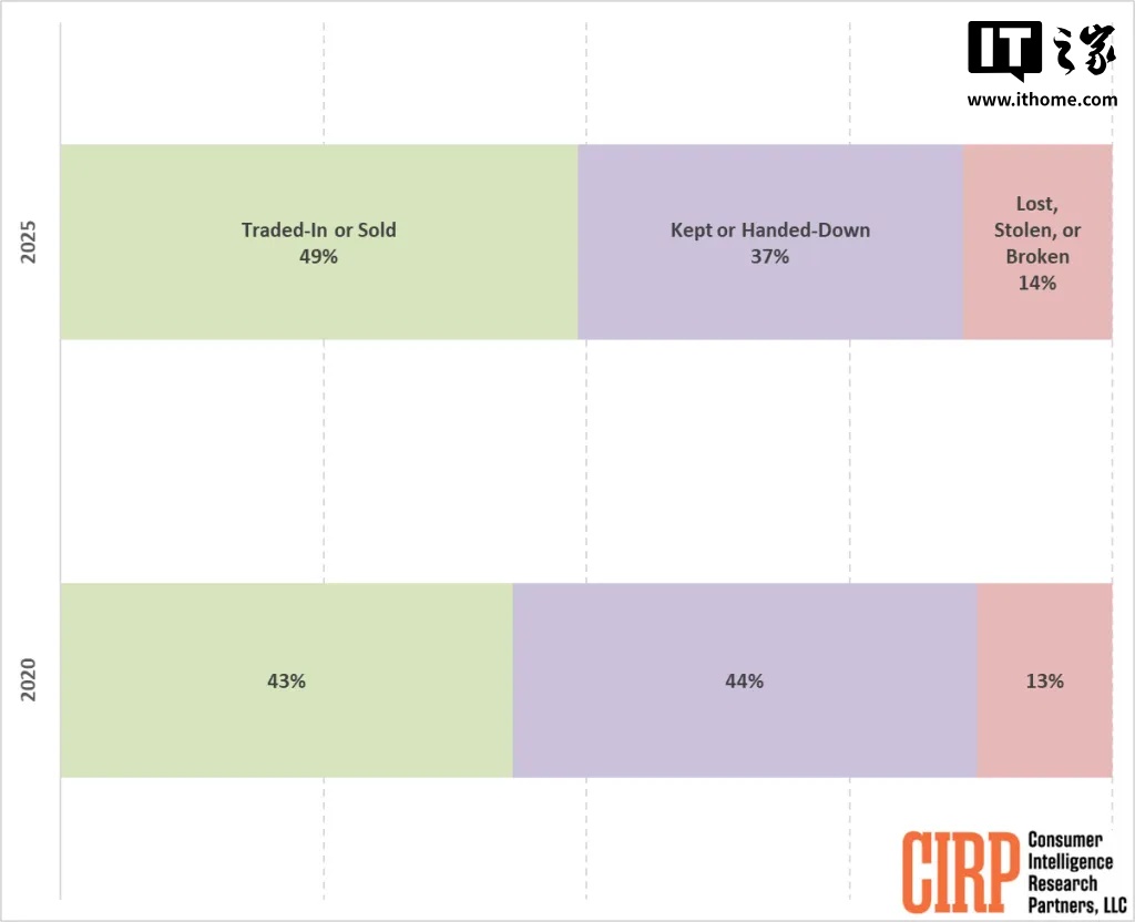 IT之家注意到,CIRP 的报告指出,运营商在推动这一趋势中发挥了重要作用。为了留住现有客户或吸引新用户,运营商纷纷加大了以旧换新的优惠力度。与此同时,第三方二手交易平台也日益成熟,为用户提供了更多渠道,以从旧设备中获取更多价值。