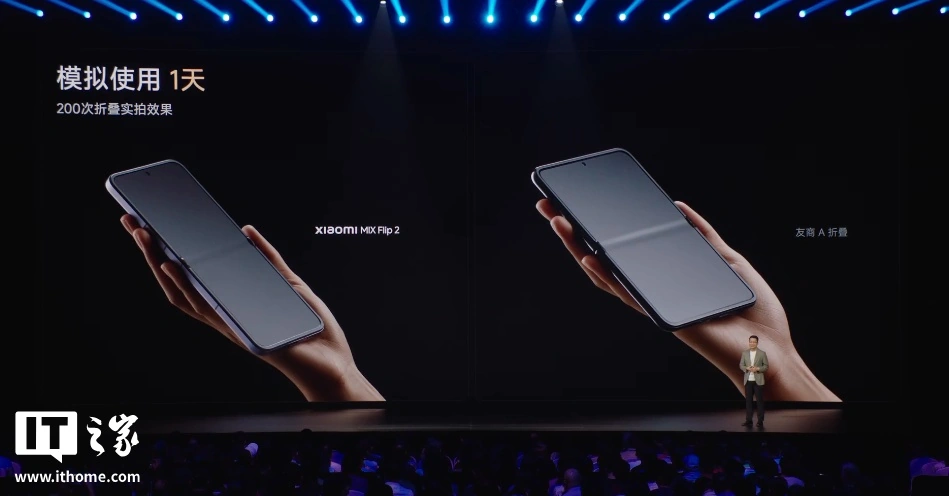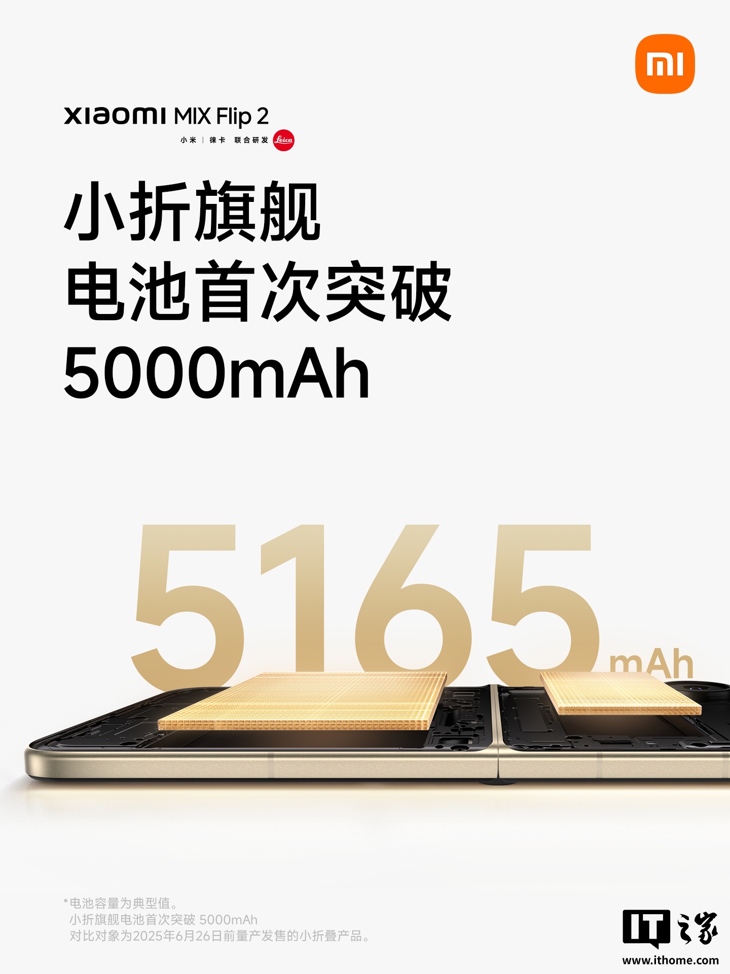另外,小米 MIX Flip 2 小折叠手机装载 5165mAh 小米金沙江电池(10% 含硅量 / 能量密度 843Wh/L),号称“小折电池容量首次突破 5000mAh”;同时拥有骁龙 8 至尊版、双 VC 立体散热、50W 无线秒充等配置,号称“旗舰体验媲美 Pro 直板机”。