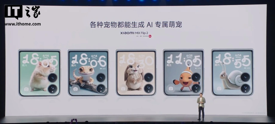 小米 MIX Flip 2 还推出 AI 定制萌宠,用户可以将自己的宠物照片变为外屏的动态宠物壁纸。