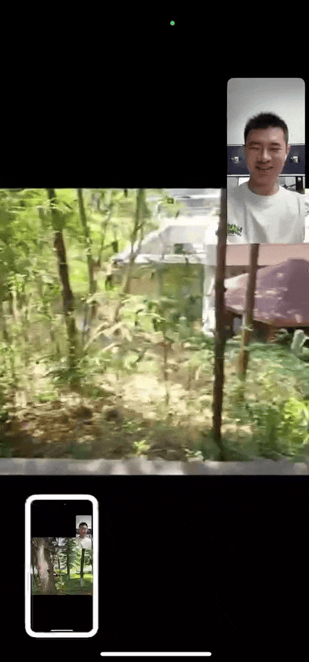 拿微信视频通话举例子,通话的时候打开手机上融合设备中心的摄像头图标,选小米 AI 眼镜,系统马上就切换成眼镜的第一视角了。