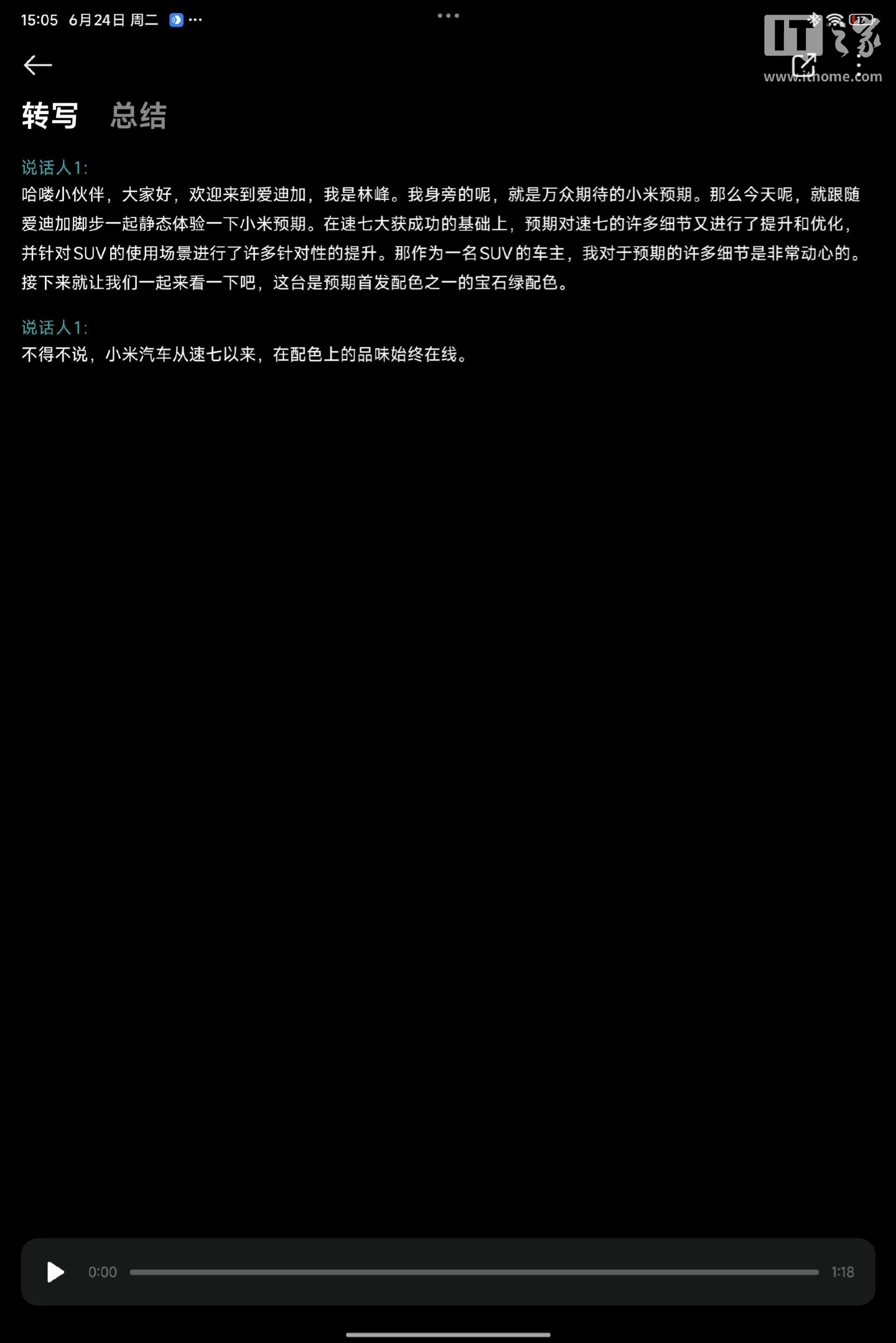 不过,目前一些新词汇的识别准确率不太高,比如小米 SU7,系统识别为速七,期待后续优化。