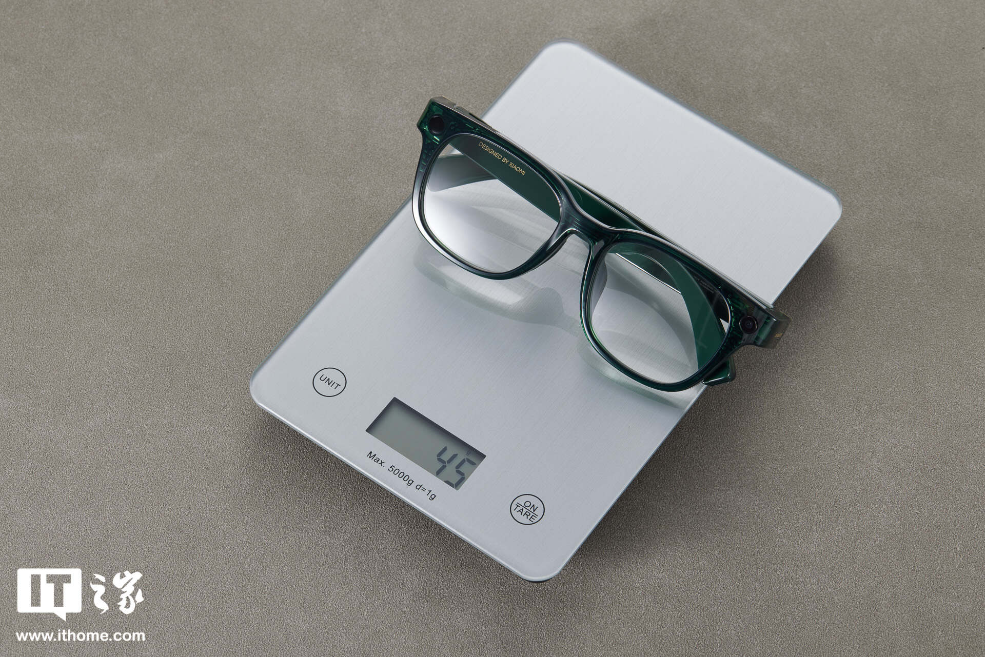 重量方面,小米 AI 眼镜不含镜⽚仅约 40 克,IT之家实测 45g(含平光镜片)。