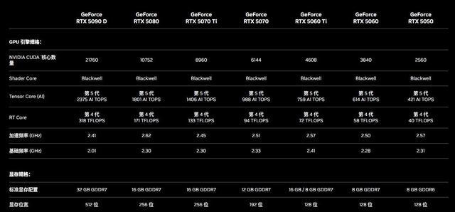 其实单纯从规格上就能看出,移动版RTX 5090与桌面版RTX 5090的差距还是非常大的,后者有着21760个CUDA核心,几乎是移动版RTX 5090的两倍。而且显存容量、位宽也更大,为32GB GDDR7、512bit位宽。单纯从规格上看,移动版RTX 5090与桌面版RTX 5080比较接近,后者有10752个CUDA核心。