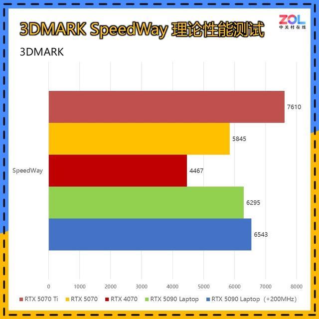 最后是Speed Way测试,移动版RTX 5090与桌面版RTX 5070 Ti的差距依旧明显,差距仍旧在10%以上。