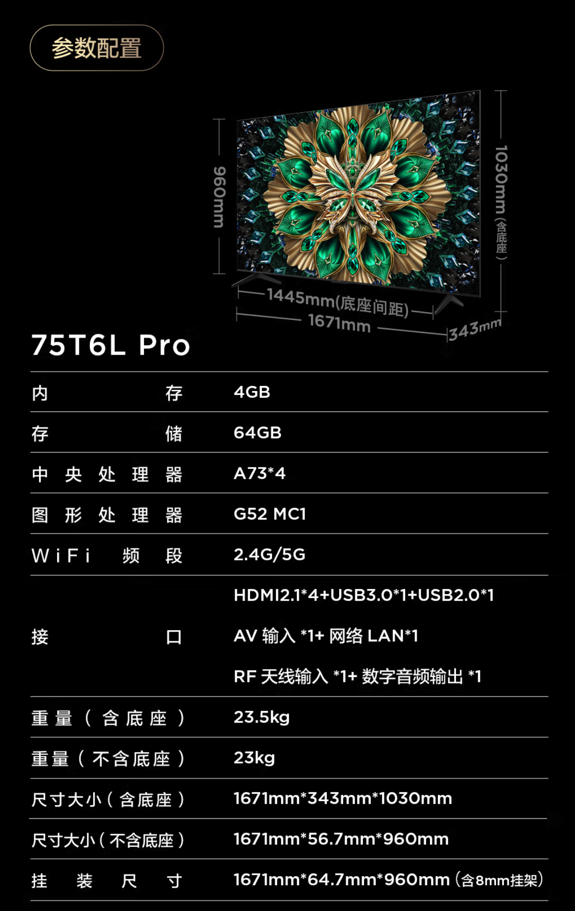 文章来源于互联网:IT之家-TCL T6L Pro 75 吋体验:高端旗舰Q10K同款蝶翼星曜屏,最具质比抗反光 Mini LED 电视