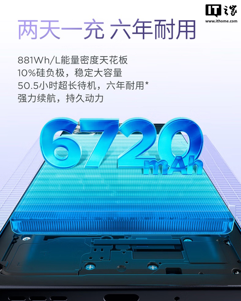该机搭载天玑 7300 处理器,匹配 8/12GB RAM 和 256/512GB 存储空间,支持应用 6 开、多场景 NFC 功能,手机配备 6720 毫安时电池,号称“两天一充”。