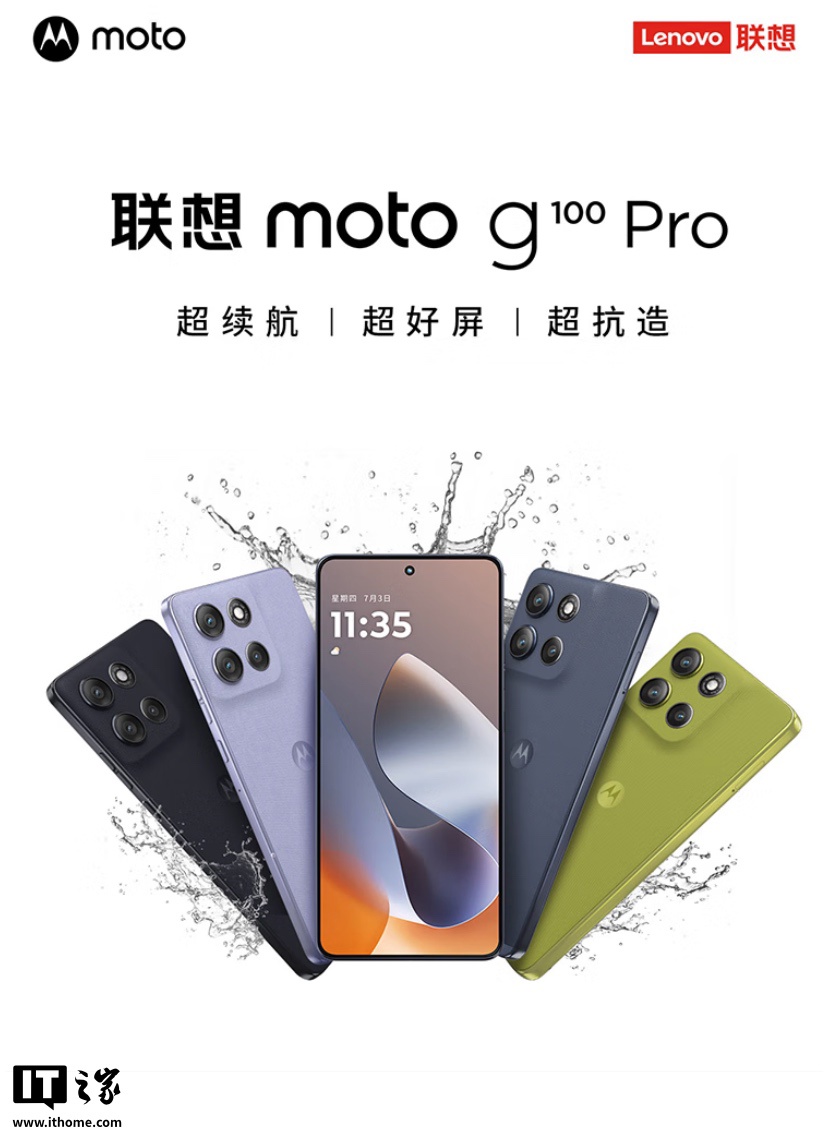 IT之家 7 月 3 日消息,联想摩托罗拉 moto g100 Pro 手机现已在京东开启预售,该机搭载一块 1.5K 护眼屏,配备 6720 毫安时电池,定价为 1399 元起,部分地区国补后 1189.15 元起。