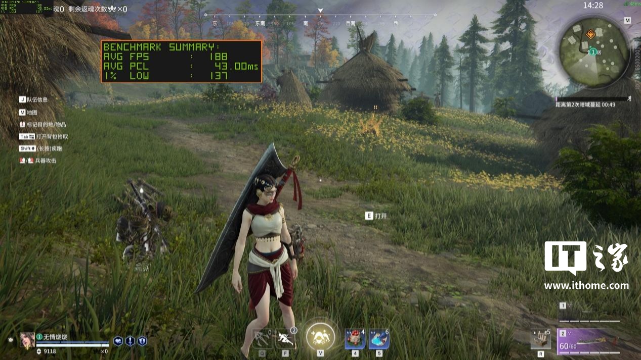 RTX 4060 Ti 在 1080P 分辨率 + 极端画质下,游戏平均帧数 118 帧,1% Low 帧 75 帧;