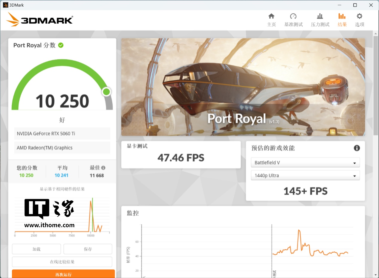 RTX 5060 Ti 的显卡分数为 10250 分;