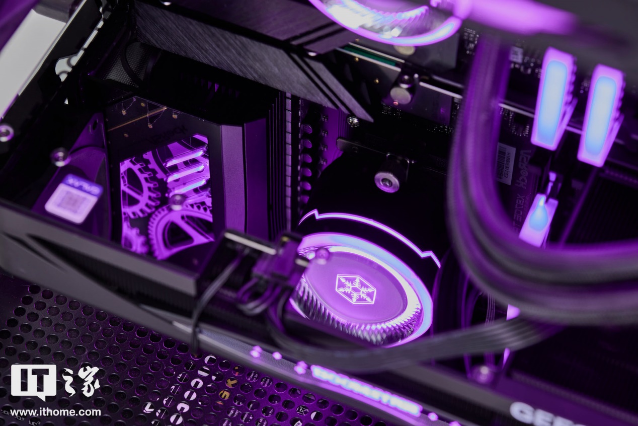 在 I/O 接口挡板的对立面影驰还设计了一个 IML 穹顶 ARGB 图案,搭配海景房机箱灯光氛围感更强。