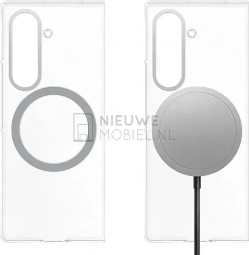 Galaxy Z Fold 7 的透明磁吸保护套与基础透明保护套几乎相同,主要区别在于一圈磁铁,这让设备能够兼容 Qi2 充电器和配件。因此,它的价格会稍高一些,零售价预计为 57 欧元(约合 67 美元)。
