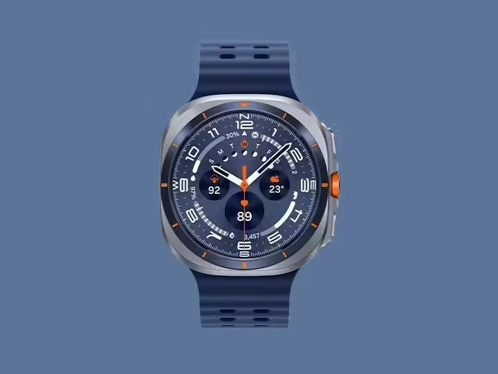 而 Galaxy Watch Ultra 2025 则主打蓝色“hero”配色,搭配蓝色 Marine 表带,与去年的橙色和深灰形成鲜明对比。这也是三星今年力推的主打色调,从 Galaxy S25 系列开始贯穿全线产品。