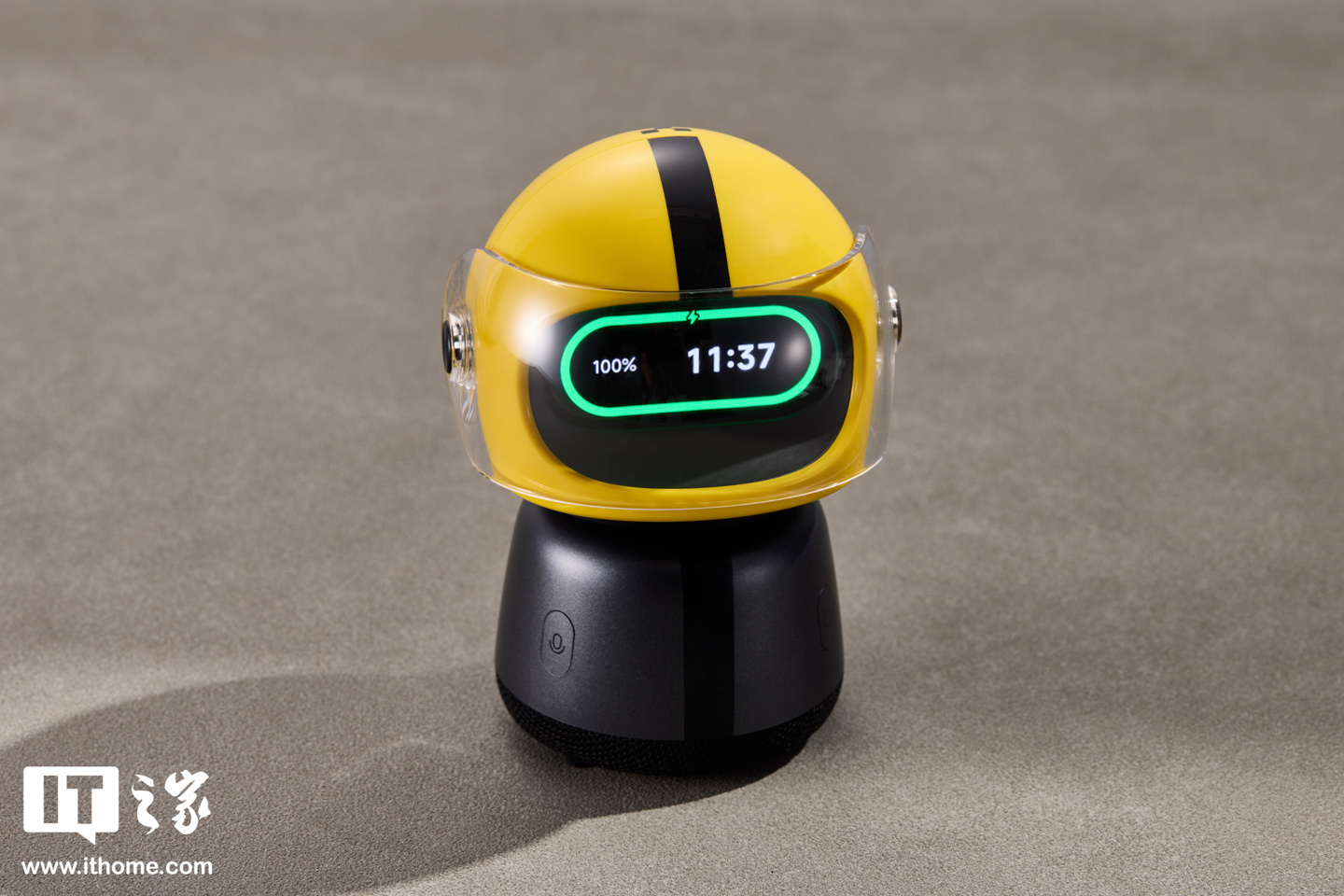 再看机身底部,隐藏着一个小音箱,机身上仅配备了两枚按键,一枚用于开机,另一枚则是语音键。在蓝牙连接模式方面,小米手环多功能桌搭支持 3 种方式,分别为手机蓝牙配对、手环 BLE 配对和米家 BLE 配对。