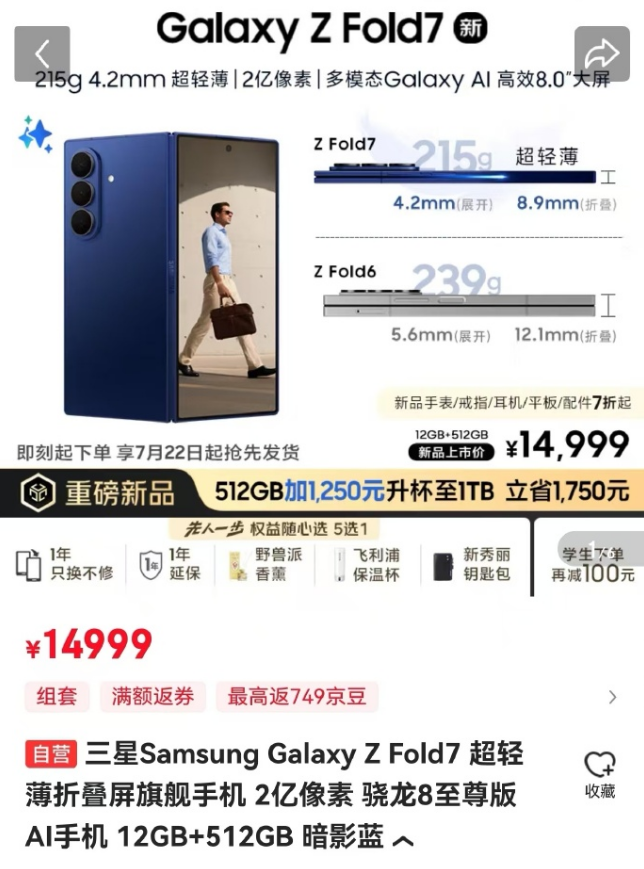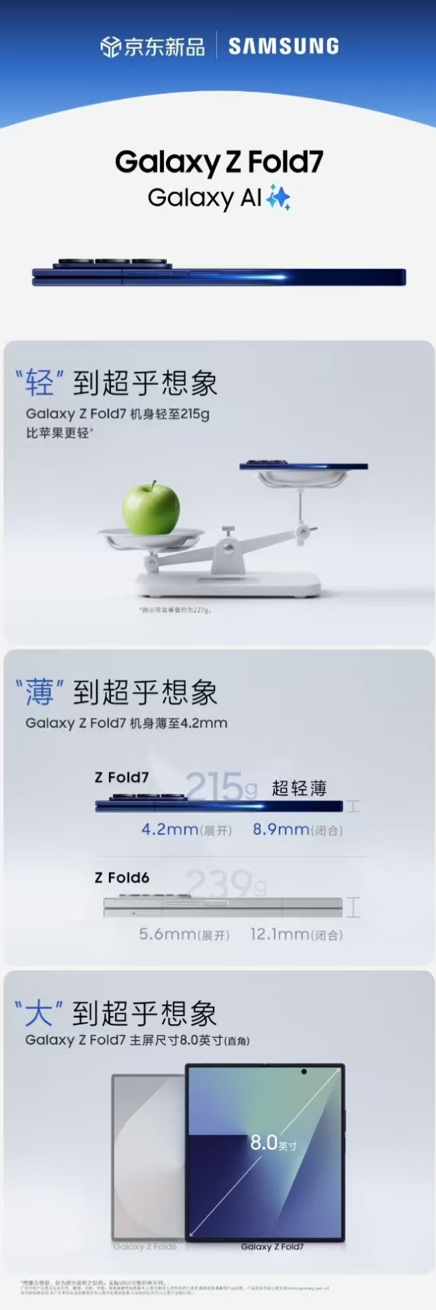 IT之家 7 月 9 日消息,三星新一代折叠屏旗舰手机 Galaxy Z Fold7 将于今日晚间 10 点正式发布,京东提前曝光了新机的规格和价格,IT之家附商品页爆料国行价格如下: