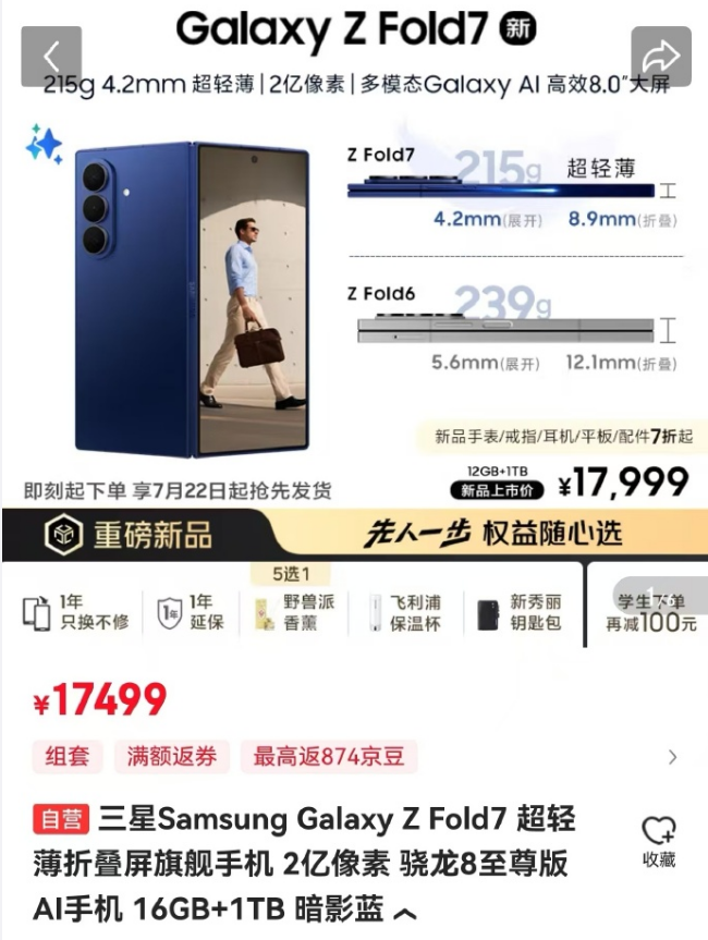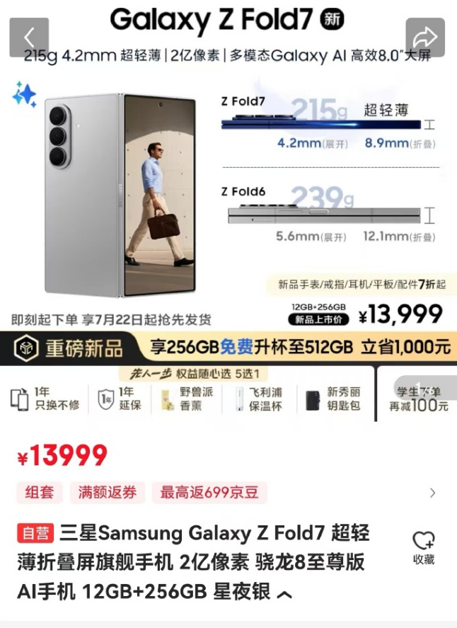 文章来源于互联网:IT之家-13999 元起,三星新一代折叠屏旗舰手机 Galaxy Z Fold7 国行价格、规格偷跑