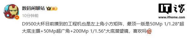 文章来源于互联网:IT之家-消息称某天玑 9500 工程机采用小方矩阵相机模组设计,预计为 OPPO Find X9 Pro