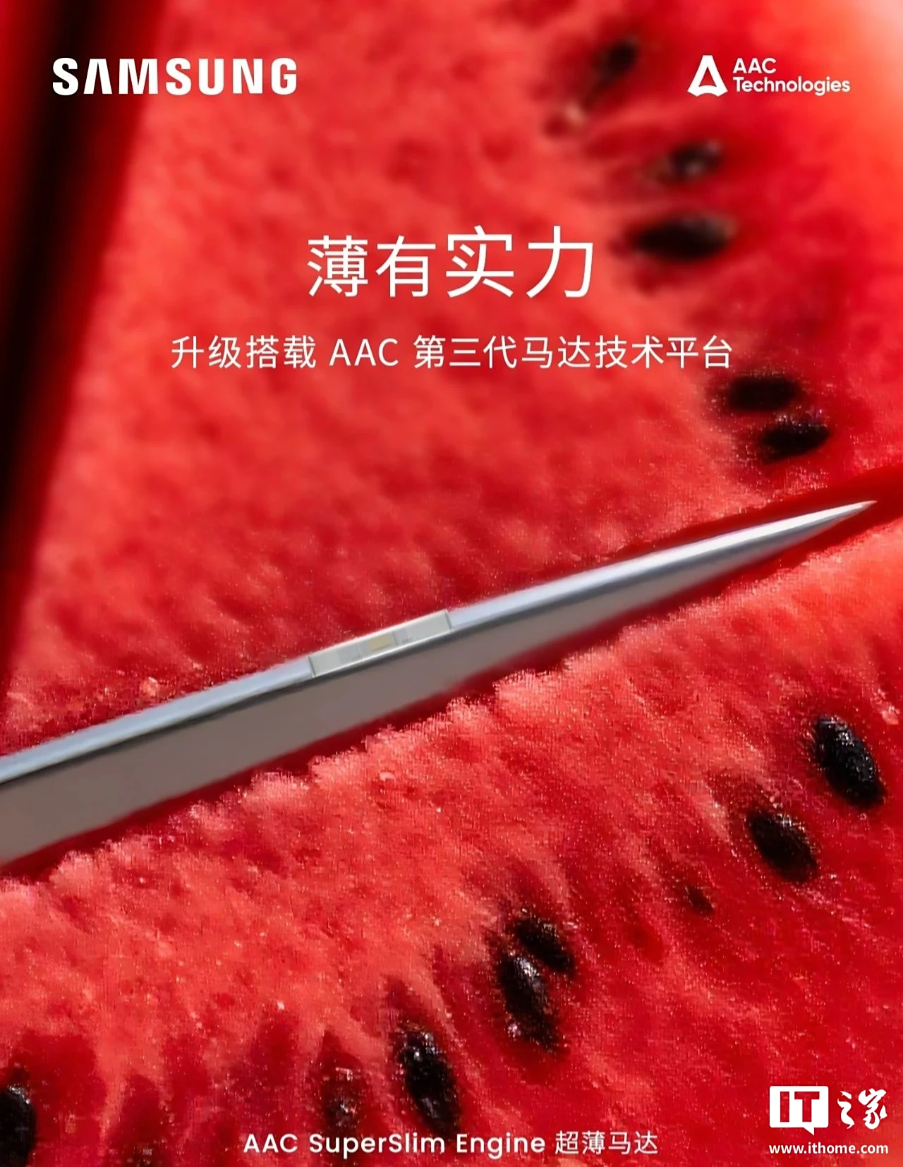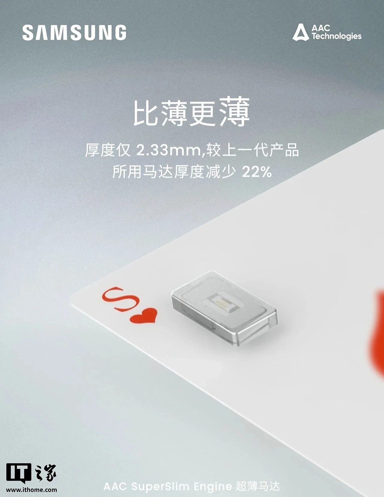 文章来源于互联网:IT之家-厚度 2.33mm:可能是手机领域最薄马达 AAC SuperSlim Engine 由三星 Galaxy Z Fold7 全球首发