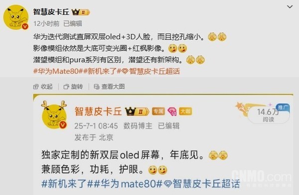 另有消息称,华为Mate 80全系机型均支持3D人脸识别功能,延续华为对生物安全的重视。与此同时,屏幕挖孔将缩小,从而优化正面观感,但非完全屏下方案(屏下技术仍处早期阶段) 。有博主早前透露,这一设计将覆盖Pro及以上高端型号,确保安全性能的同时,实现直屏与3D识别的结合 。