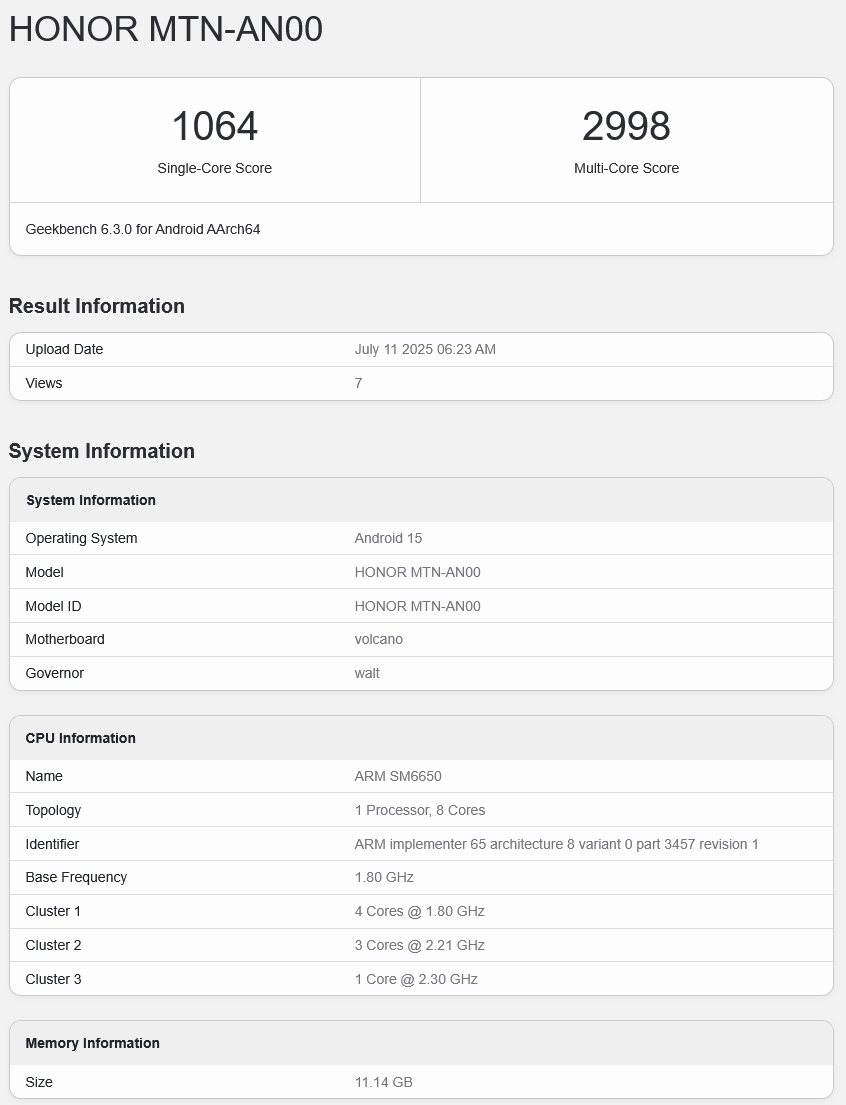 IT之家 7 月 12 日消息,科技媒体 xpertpick 昨日(7 月 11 日)发布博文,报道称型号为 MTN-AN10 的荣耀新机现身 GeekBench 跑分库,结合此前 3C 和 MIIT 国内认证,可以确认为荣耀 X70 手机。