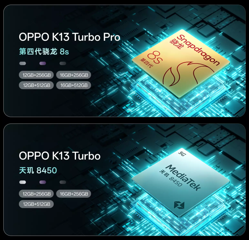 文章来源于互联网:IT之家-OPPO K13 Turbo / Pro 手机处理器公布:天玑 8450、骁龙 8s Gen4