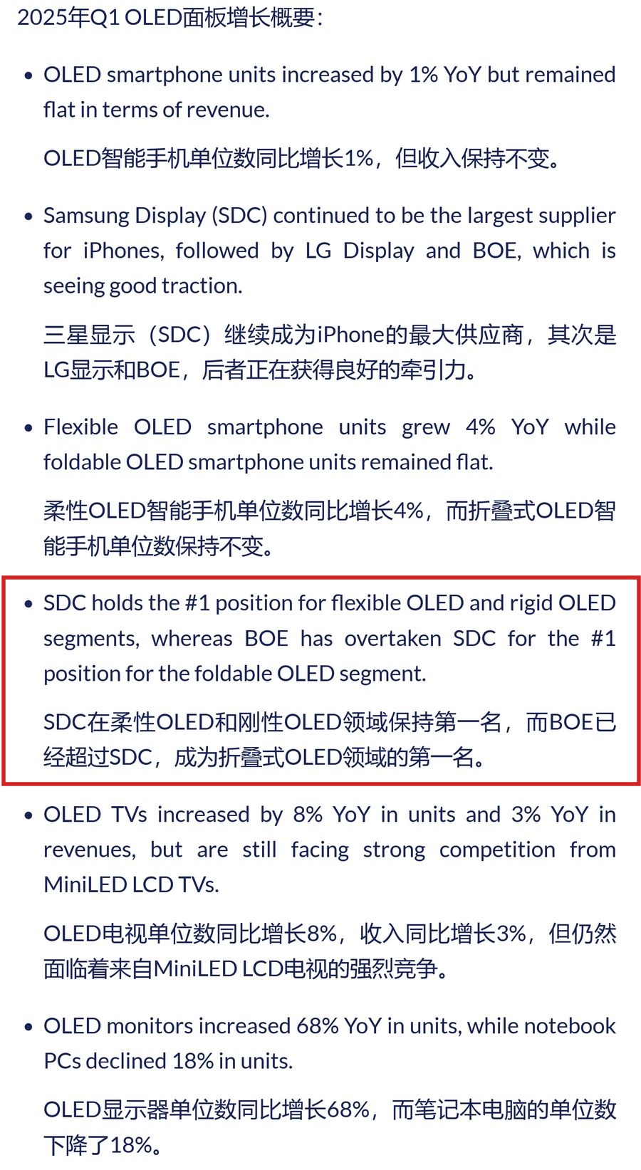 文章来源于互联网:IT之家-CounterPoint 报告 2025Q1 全球 OLED 面板出货:京东方折叠屏供应超三星显示成第一