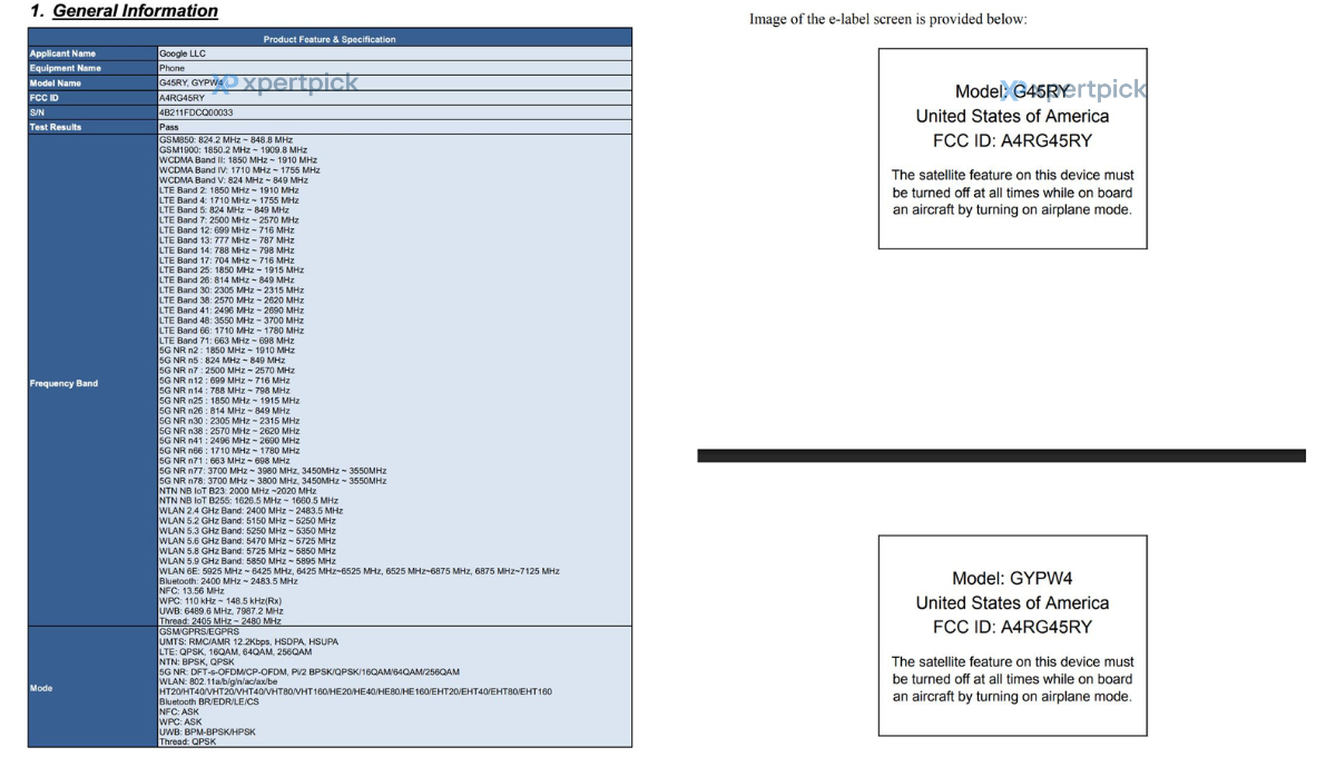 FCC ID 为 A4RGK2MP 的认证文件显示,型号为 GK2MP 和 GL066 的谷歌新机近期通过了 FCC 认证,同时另一份文件(A4RGLBW0)中还有一款型号为 GLBW0 的谷歌新机。Xpertpick 根据过往相关报道,推测 GL066 和 GLBW0 均为 Pixel 10 标准版,同时推测 GK2MP 也隶属于该系列。