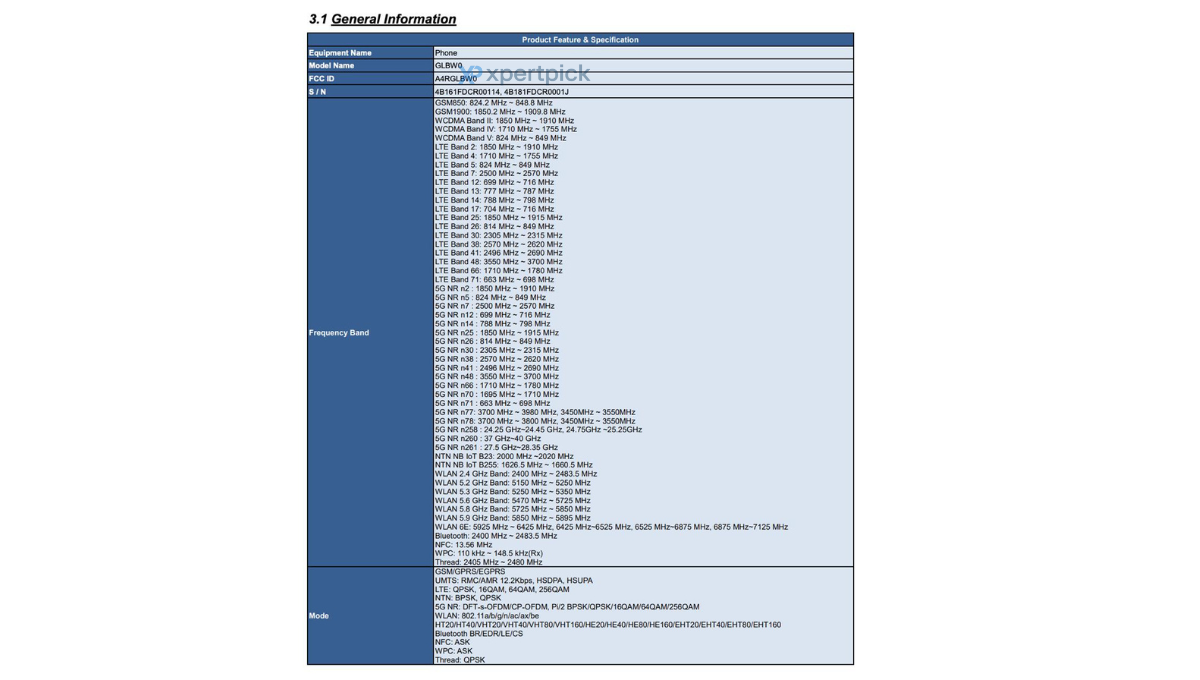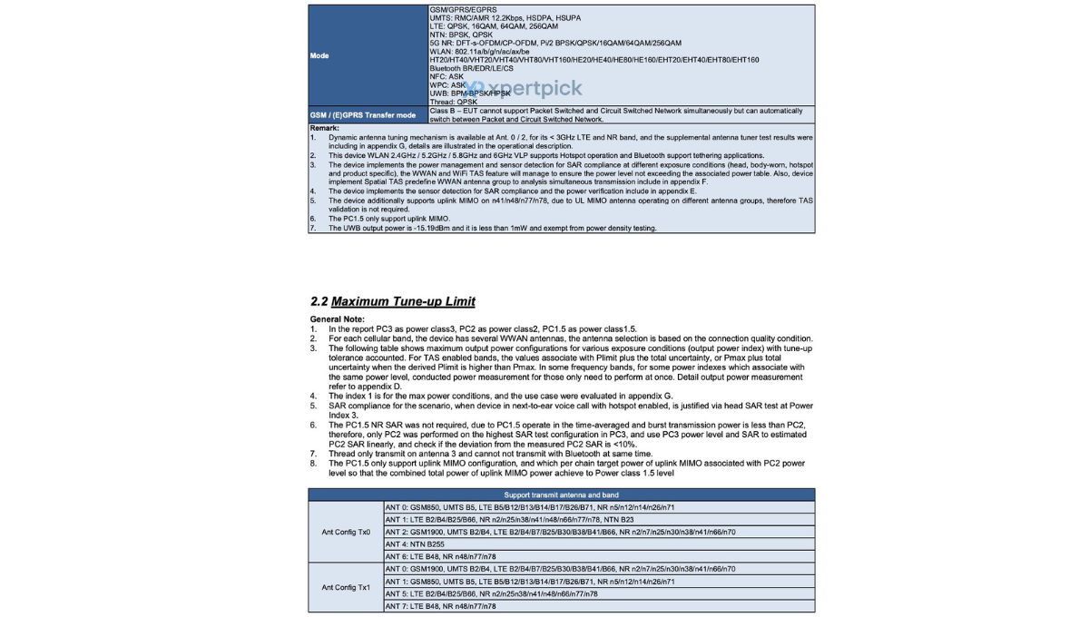 文件表明,GEHN3、G4QUR 版本可能支持卫星通信,所有版本均支持 5G、WiFi、蓝牙和 NFC。