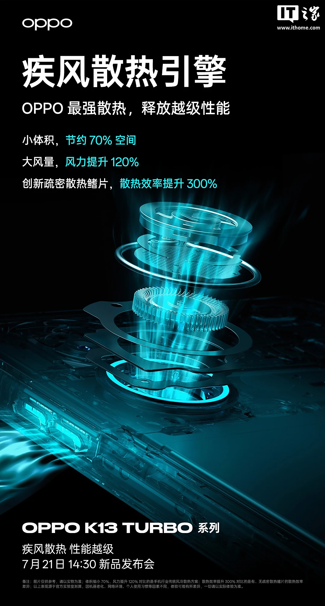 IT之家 7 月 16 日消息,OPPO K13 Turbo 系列手机已官宣 7 月 21 日发布,新机分别搭载天玑 8450 和骁龙 8s Gen4 处理器,主打内置主动散热风扇。