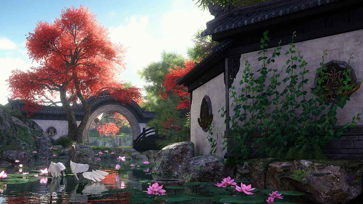汴京的建筑恢宏壮阔,建筑多采用红漆,晴天的观感极具视觉冲击力。在逆水寒 3.0 新版本的启动器宣传视频中就有该场景,所以必须拿它验货。