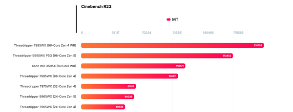 在Chiphell论坛相关帖子中,Napoleon放出了线程撕裂者PRO 9995WX在Cinebench R23多核测试中得分,获得了高达173452分。