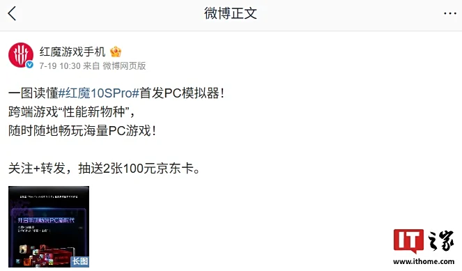 IT之家 7 月 20 日消息,红魔游戏手机昨日官宣,红魔 10S Pro 系列手机首发上线 PC 模拟器,系列机型更新至 RedMagicOS 10.5.11 最新版系统后可体验,号称跨端游戏“性能新物种”。
