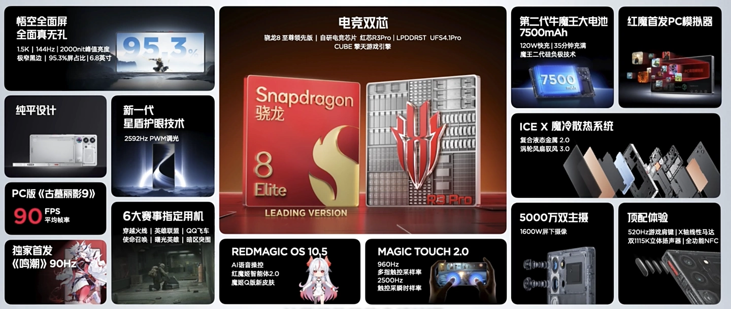 据IT之家此前报道,红魔 10S Pro 系列手机发布于今年 5 月,搭载骁龙 8 至尊领先版处理器 + 自研电竞芯片红芯 R3 PRO,内置 7050mAh 电池 + 支持 80W 快充,配备 1.5K 悟空全面屏,采用 ICE X 魔冷散热系统,内置 PC 模拟器。各版本售价如下: