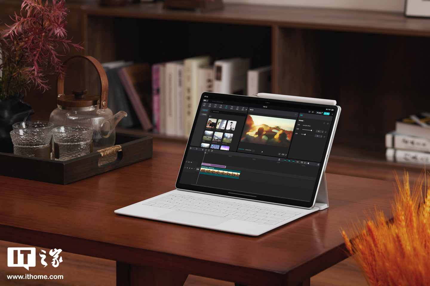 华为 MatePad Pro 12.2 英寸上的剪映专业版同样有着和电脑端一致的操作体验,从拖拽式的素材导入,到剪辑操作,再到导出,都是熟悉的操作方式。
