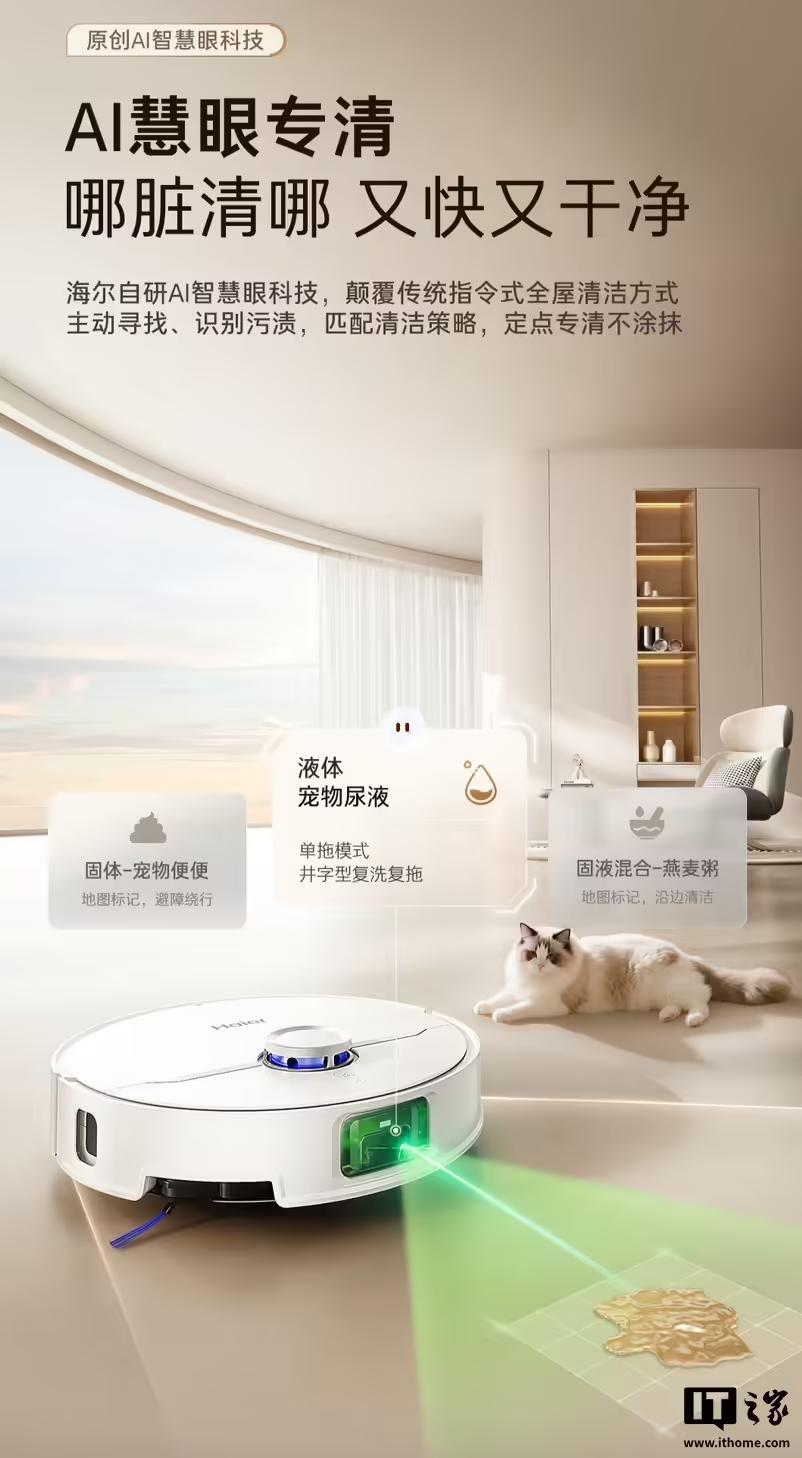 文章来源于互联网:凤凰网-海尔推出宠爱V40扫地机:搭载“AI智慧眼”传感器,主动寻找污渍擦除