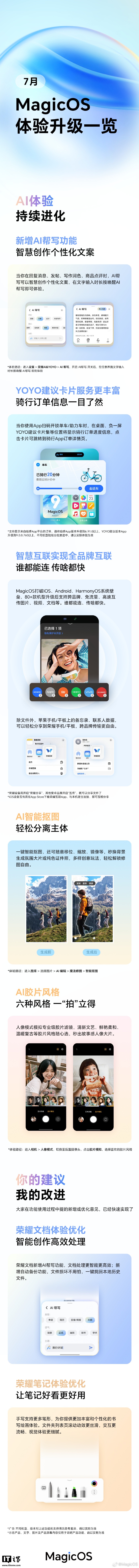 文章来源于互联网:IT之家-更新 AI 帮写、智能抠图、动态照片锁屏等,荣耀 MagicOS 七月体验升级一览