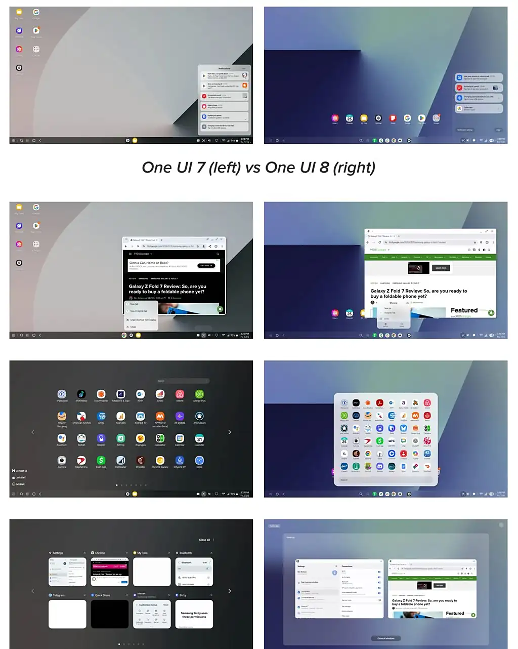 IT之家附上 One UI 7 和 One UI 8 对比图如下: