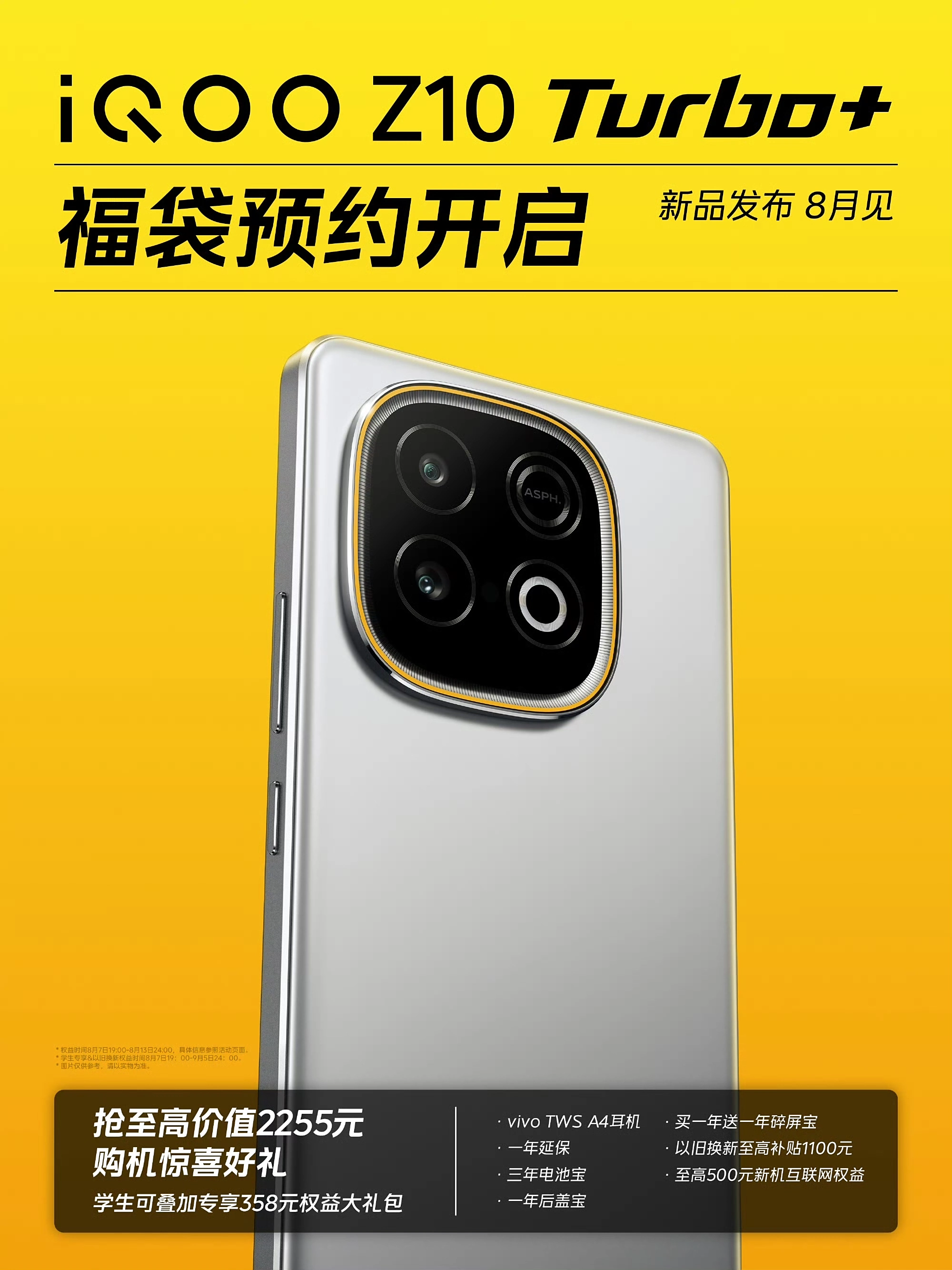 据IT之家昨日报道,iQOO Z10 Turbo+ 手机已官宣新品发布 8 月见,有爆料称新机左上角双摄采用矩阵镜头 + 环闪设计,R 角不大,ID 基本上不变;搭载满血天玑 9400+ 处理器,拥有 7K VC 散热 + 8000mAh 大电池,机身厚度 8mm±,主打实用。