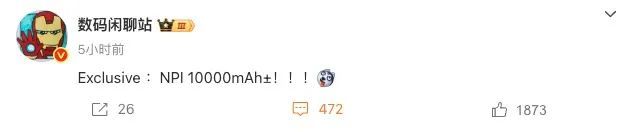 根据数码圈爆料博主消息,有一款 10000mAh 左右容量的新机,已经进入 NPI(新产品导入)流程了。