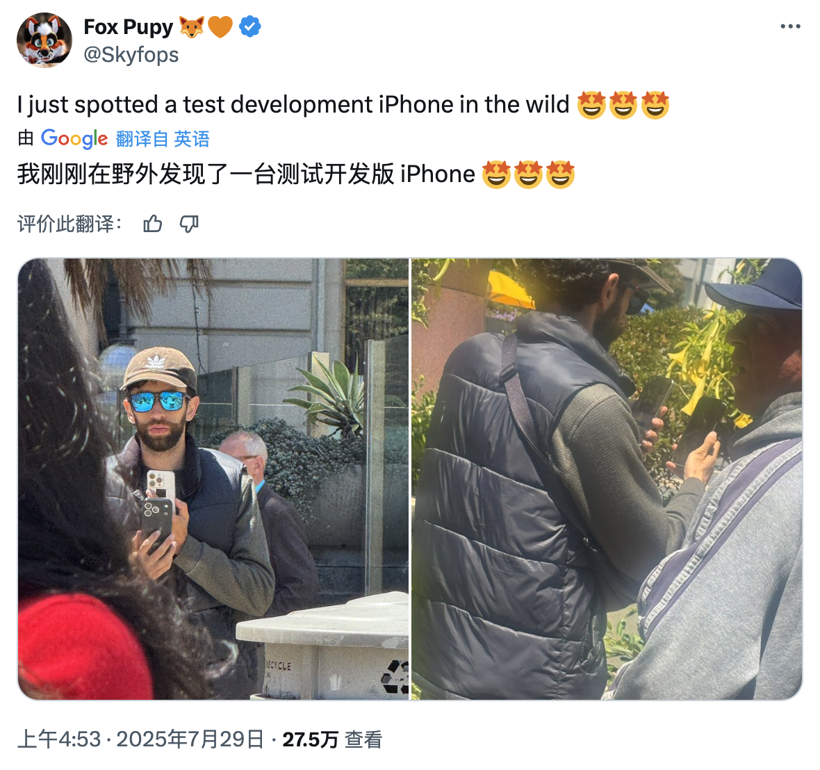 “我刚在公开场合看到一台测试中的开发版iPhone。”@Skyfops在帖子中表示。