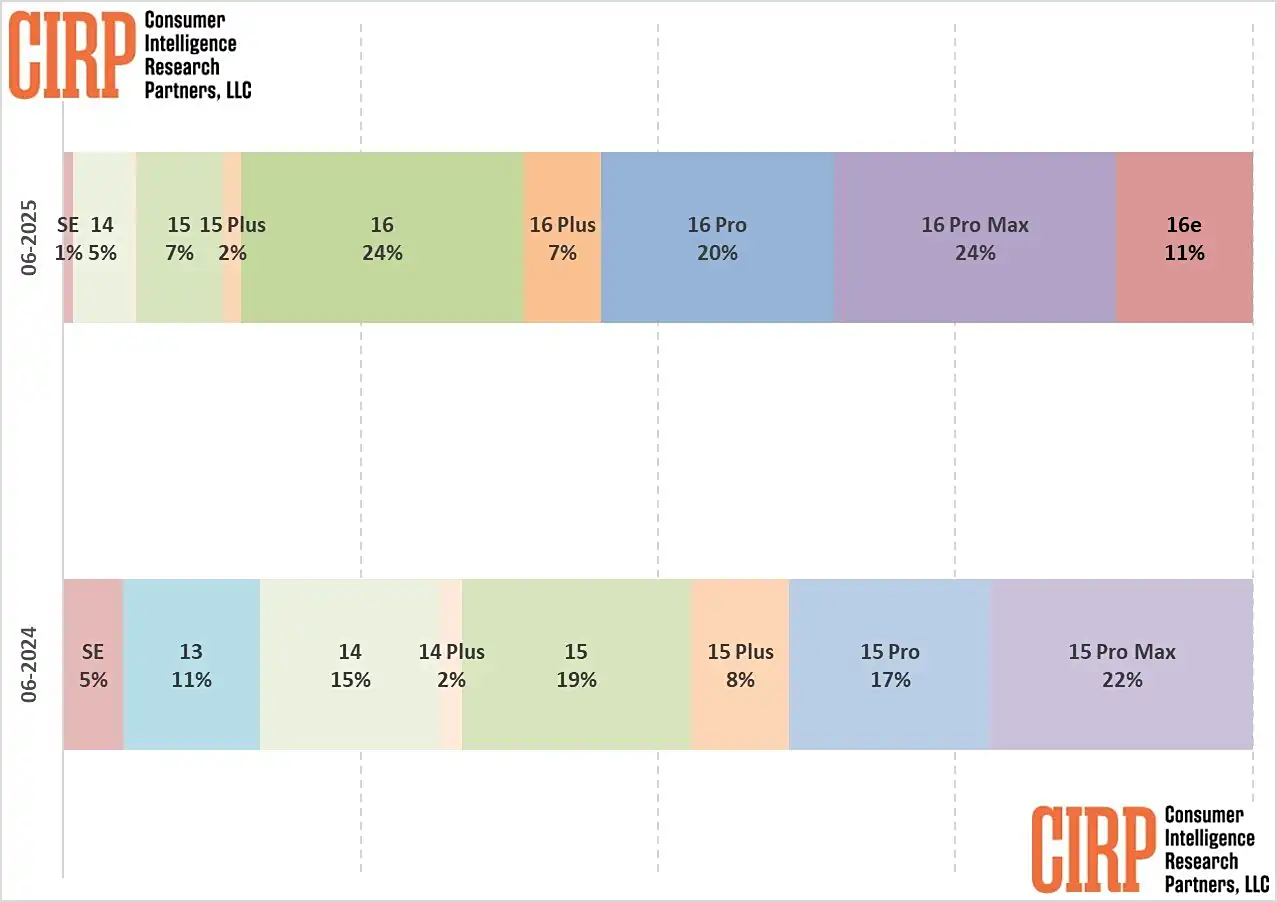 比重超 SE 同期 120%:苹果亲民策略凑效,16e 六月美国 iPhone 占比达 11%