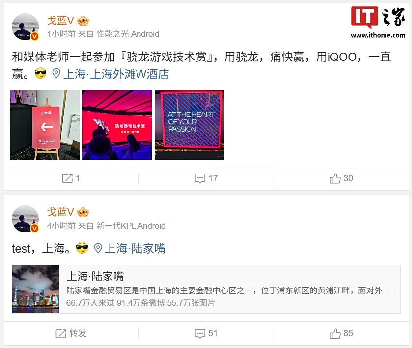 IT之家注意到,iQOO 产品经理 @戈蓝V 微博小尾巴显示了不同的“昵称”,包括:新一代 KPL Android、性能之光 Android。由此来看,预计 iQOO 15 新机将继续成为 KPL 官方比赛用机。