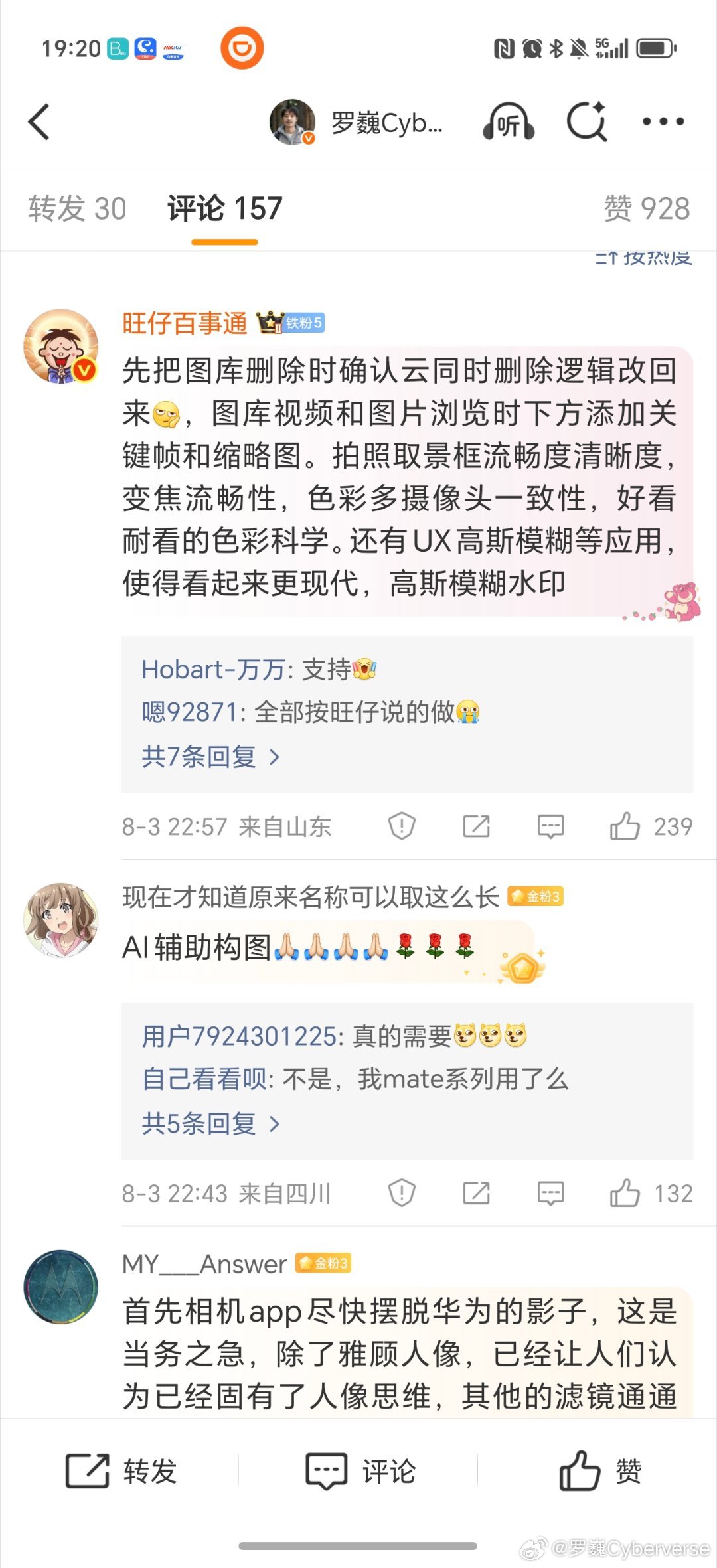 IT之家 8 月 4 日消息,荣耀首席影像工程师罗巍昨日在微博征求用户对于图库 App 和拍照 App 下一步进化的心愿,并表示将按照点赞最多的顺序来实现。
