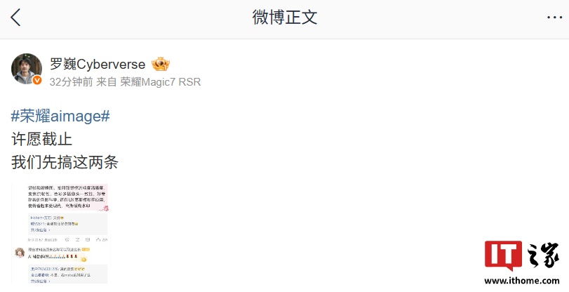 文章来源于互联网:IT之家-许愿成功:罗巍透露荣耀 AiMAGE 影像将支持 AI 辅助构图功能