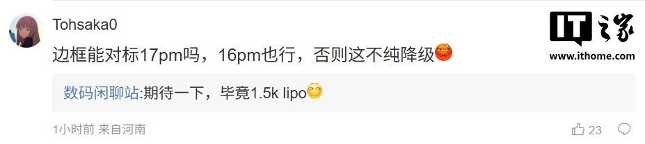 后续有用户在评论区询问:“边框能对标 17PM 吗,16PM 也行,否则这不纯降级