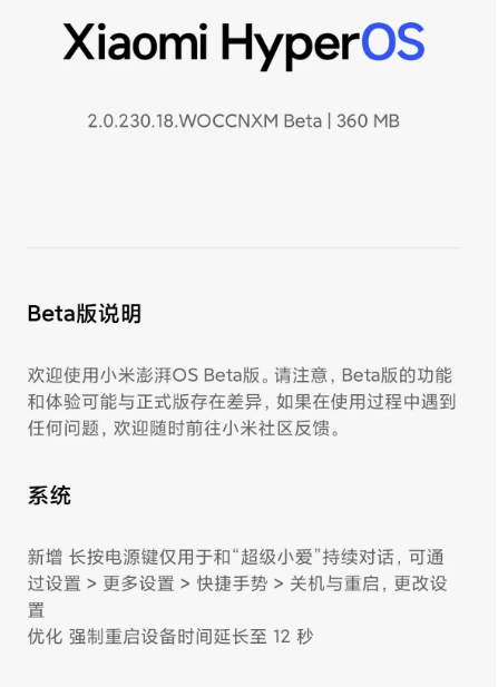 该Beta版本固件大小约为360MB,属于常规功能性更新,未涉及重大界面改动或新应用推送。小米官方提醒,Beta版本系统仍处于测试阶段,可能存在功能不稳定或兼容性问题,建议普通用户谨慎参与。如在使用过程中遇到异常,可前往小米社区相关板块提交反馈,帮助开发团队持续优化。